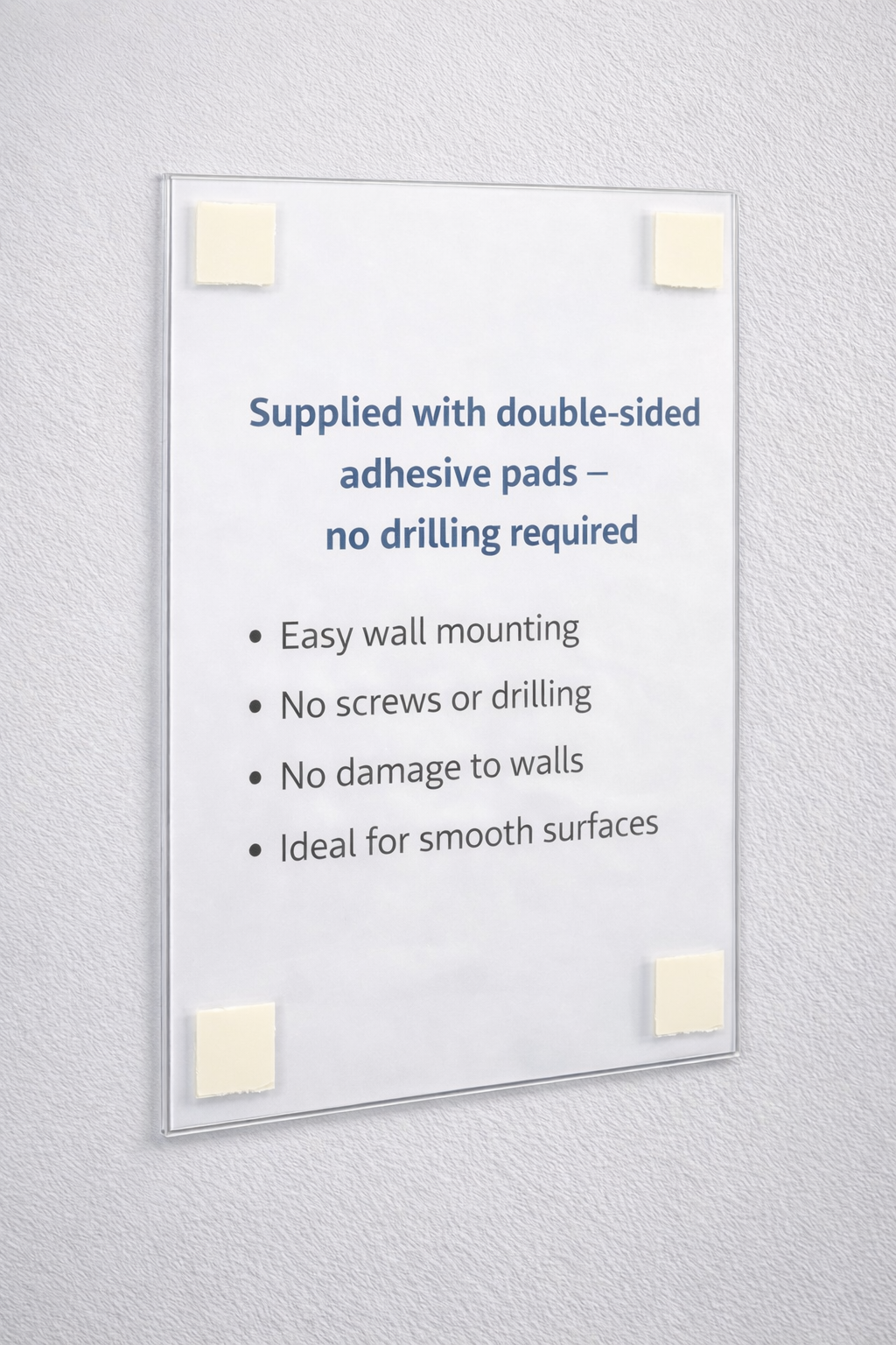These A4 Portrait acrylic flat folds are ideal for displaying menus, brochures, retail promotions & special offers. Provided with a strip of double sided sticky tape so you can easily stick these straight to the wall.