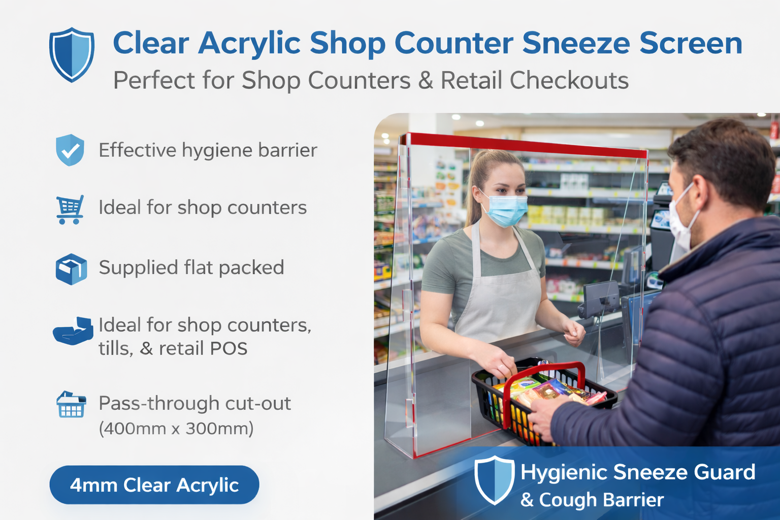 Shop Counter Screen 1m wide x 1m high