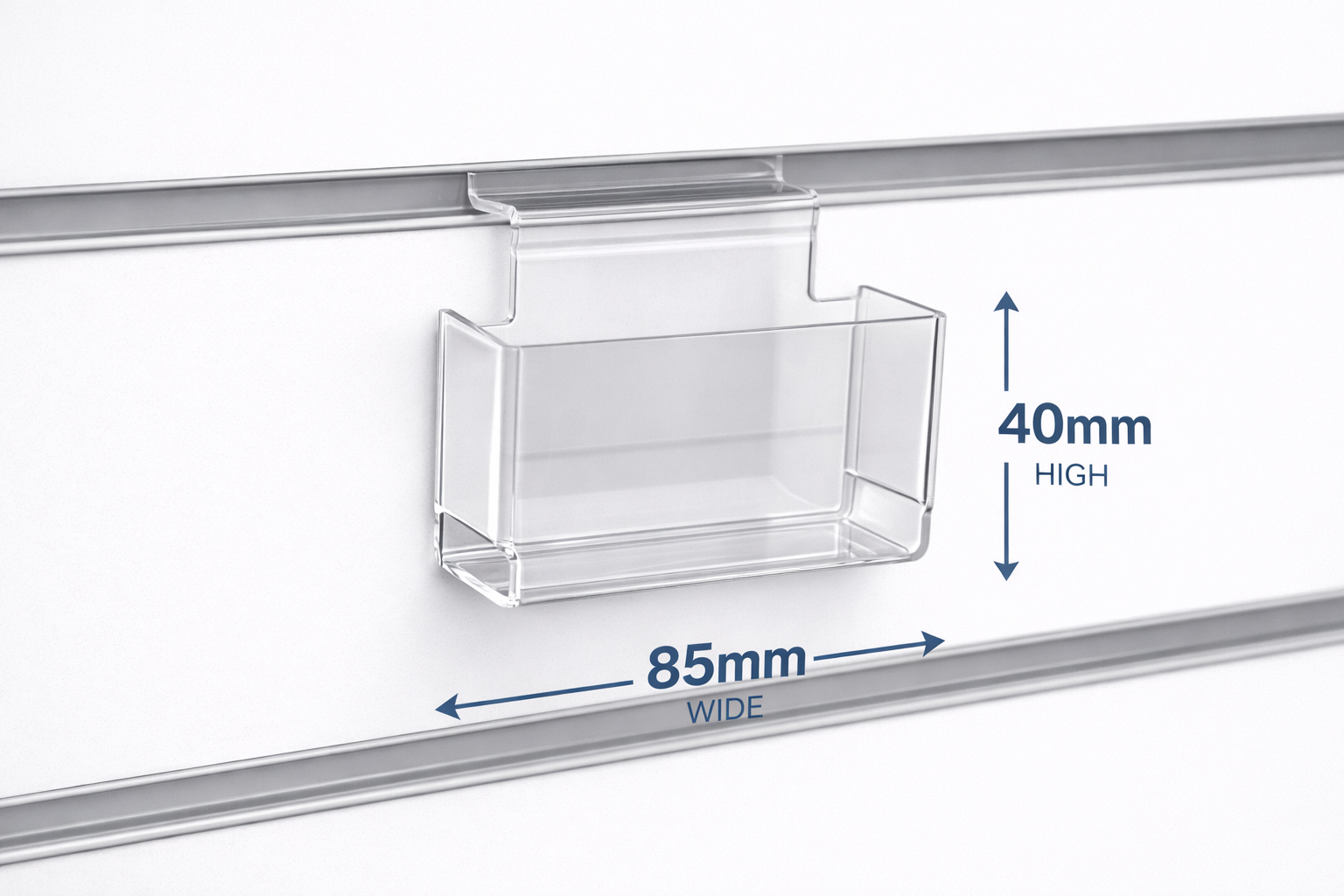 This acrylic slatwall gift tag holder is small yet sleek solution for displaying gift tags, flower cards sale cards and much more. Designed specifically for slatwall panels this holder offers convenient accessibility and clear visibility for small gift tags. The slatwall tag holder is a perfect accessory for retail stores, gift shops, craft stores and much more. These slatwall tag holder are 85mm wide x 40mm high