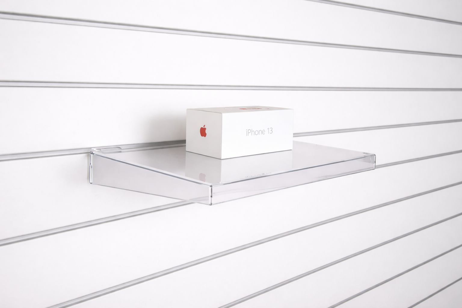 This acrylic slatwall supported shelf is 400mm wide x 200mm deep. Manufactured out of 3mm premium quality clear acrylic this slatwall display shelf is specifically designed to be easily attached to any UK standard slatwall, allowing you to maximise your retail space and showcase a wide range of light weight products with elegance and visibility. These slatwall supported shelves are ideal for various retail settings such as boutiques, stores, supermarkets or exhibitions.