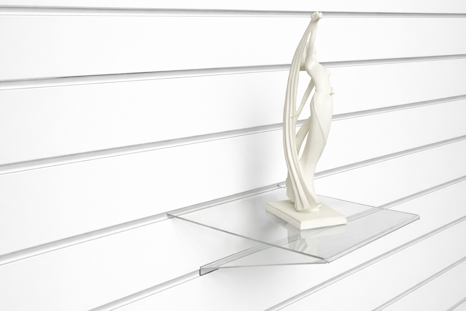 Acrylic slatwall V shelf 300mm wide x 200mm deep. This heavy duty slatwall shelf is manufactured out of 3mm clear acrylic and provides exceptional support due to its unique V shape design. Designed to fit into all UK standard slatwall, this V shelf is ideal for the organising your display and storage of various items. Whether you need to showcase merchandise in a retail environment or add functionality to your office, this slatwall V shelf is your perfect solution.