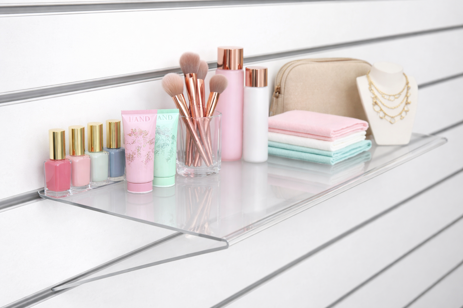 Acrylic slatwall V shelf 600mm wide x 200mm deep. This heavy duty slatwall shelf is manufactured out of 3mm clear acrylic and provides exceptional support due to its unique V shape design. Designed to fit into all UK standard slatwall, this V shelf is ideal for the organising your display and storage of various items. Whether you need to showcase merchandise in a retail environment or add functionality to your office, this slatwall V shelf is your perfect solution.